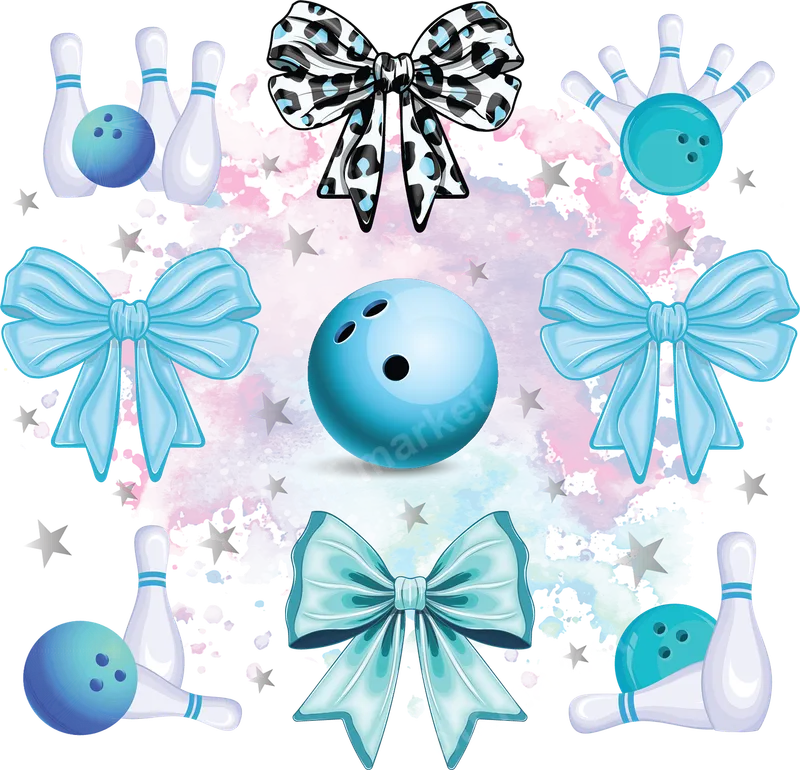Chic Bowling Pins & Bows DTF Transfer with Teal Accents