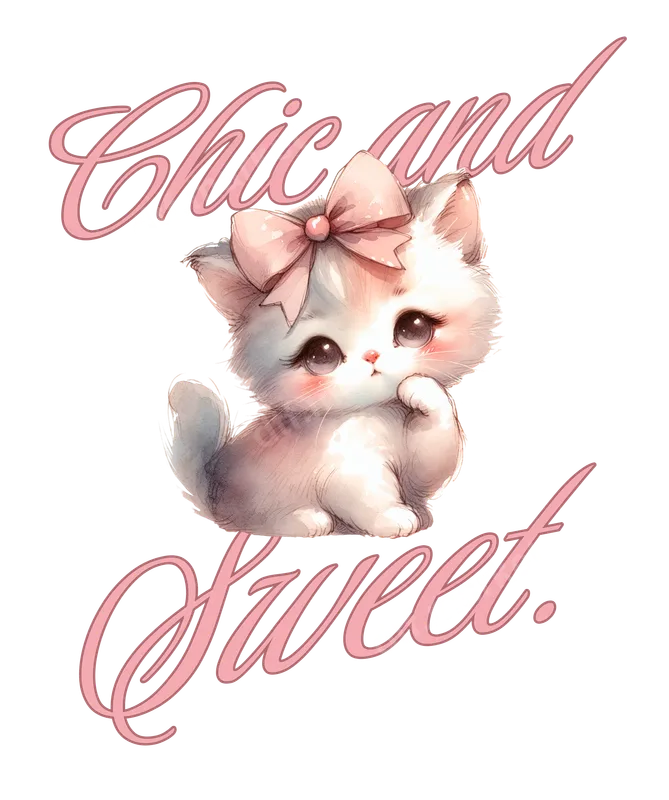 See allEmbrace adorable charm with this 'Chic and Sweet' DTF transfer featuring an irresistibly cute kawaii kitten. Adorned with a delicate pink bow and rendered in a soft, watercolor-like style, this design exudes sweetness and playful elegance. It's a ready to press design that brings instant joy and a touch of feminine grace to any garment or accessory. This charming heat press ready design is ideal for cat enthusiasts, pet owners, young girls, and anyone who appreciates cute and chic aesthetics. Perfect for creating unique gifts for birthdays, Mother's Day, or simply to express your love for felines. It makes an excellent iron on transfer for crafting personalized apparel for a girl's trip, a casual outing, or just to brighten up everyday wear. Applying this high-quality shirt design is straightforward. It works beautifully on a wide range of fabrics including cotton, polyester, and their blends. Simply use a heat press at 300-325°F for 15 seconds with medium pressure. For home crafters, a household iron can also be used following careful instructions. There’s no need for tedious weeding, making customization quick and effortless. Our professional DTF transfers boast vibrant colors that truly pop and maintain their integrity wash after wash. The design is crack-resistant, feels incredibly soft to the touch, and utilizes strong adhesive for long-lasting wear. Enjoy a premium heat press transfer experience with results that look professionally printed and are designed to endure.