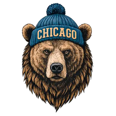 Chicago Bear Beanie Urban DTF Transfer | Grizzly Heat Press Design