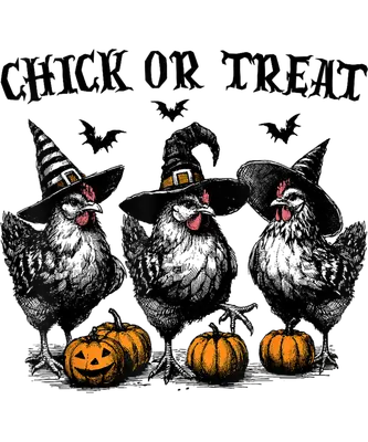 Chick or Treat Halloween Witch Chickens DTF Transfer