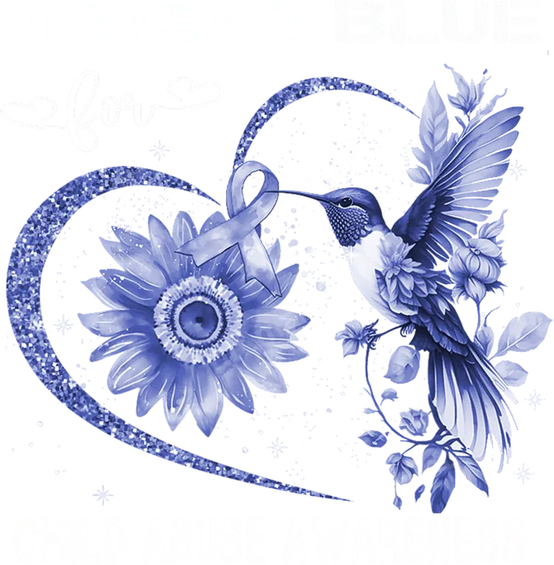 See allThis vibrant DTF transfer features a powerful design declaring 'I Wear Blue for Child Abuse Awareness.' The artwork beautifully combines a sparkling blue glitter heart outline, a delicate blue awareness ribbon, a watercolor-style sunflower, and a graceful hummingbird amidst blooming florals. This ready to press design is perfect for advocating and showing solidarity with a deeply meaningful message. This heat transfer is ideal for advocates, supporters, survivors, and families impacted by child abuse. Wear it proudly during Child Abuse Prevention Month (April), awareness walks, fundraising events, or as a daily reminder of your commitment to the cause. It also makes a thoughtful and impactful gift for those dedicated to raising awareness and prevention. Our premium heat press design ensures easy application to a wide range of materials including 100% cotton, polyester, and various fabric blends. Simply use a heat press at 300-325°F for 15 seconds with medium pressure, or apply with a household iron. There's no tedious weeding or layering required, making your garment customization quick and effortless. Experience stunning quality with this apparel transfer. Printed using professional-grade DTF film, the colors are incredibly vibrant, crack-resistant, and offer a soft-hand feel once applied. This durable iron on transfer will maintain its integrity wash after wash, allowing your powerful message of awareness to shine brightly for years to come.