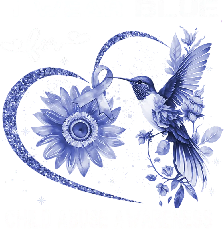 Child Abuse Awareness DTF Transfer | Blue Ribbon Hummingbird Sunflower
