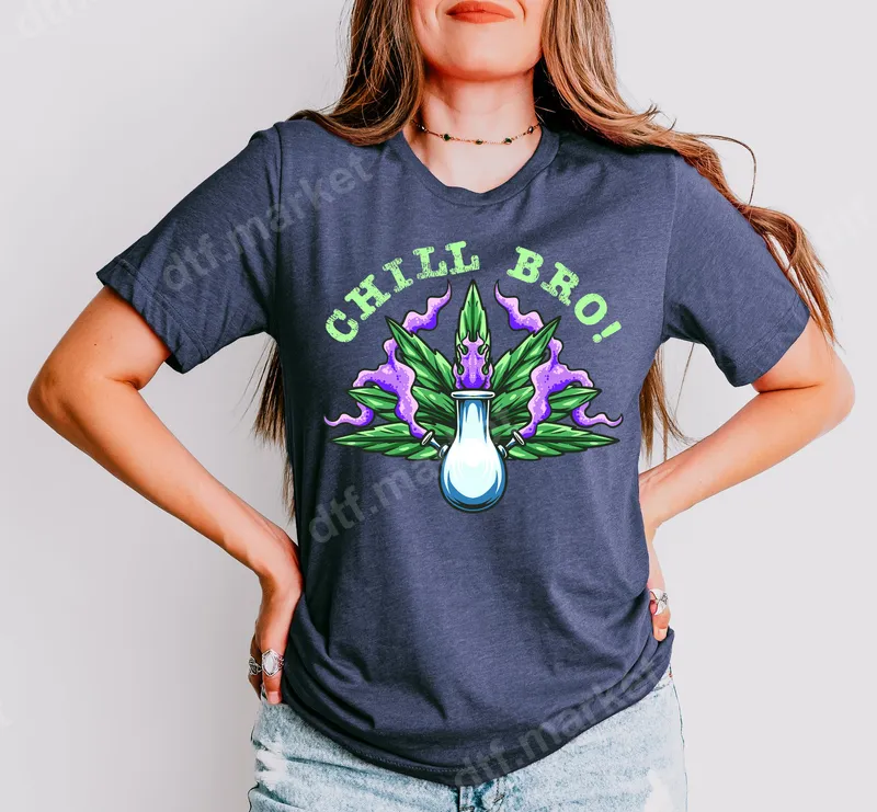 See allEmbrace ultimate relaxation with our 'Chill Bro!' DTF transfer, featuring a vibrant design of a classic bong enveloped by detailed cannabis leaves and wisps of purple smoke. The bold, light green text perfectly complements the laid-back stoner vibe, making this direct to film transfer a standout piece. It's a high-quality, ready to press design that captures a cool, carefree attitude. This unique heat transfer is perfect for anyone in the 420 culture, cannabis enthusiasts, or those who simply appreciate a humorous and relaxed aesthetic. It makes an excellent gift for friends, significant others, or even yourself, ideal for casual gatherings, festivals, or just lounging at home. Show off your laid-back style at parties, concerts, or as a fun addition to your everyday wardrobe. Applying this heat press ready graphic is incredibly simple, compatible with a wide range of fabrics including cotton, polyester, and various blends. For best results, use a heat press at 300-325°F for 15 seconds with medium pressure, then cold peel. A household iron can also be used. This iron on transfer requires no weeding, saving you time and effort. Crafted using premium professional DTF film, this t-shirt transfer ensures exceptional durability and vivid color reproduction that truly pops. The advanced ink technology results in a crack-resistant finish that feels remarkably soft to the touch, unlike traditional vinyl transfers. Our high-quality adhesive guarantees your shirt design will withstand countless washes, maintaining its original vibrancy and integrity.