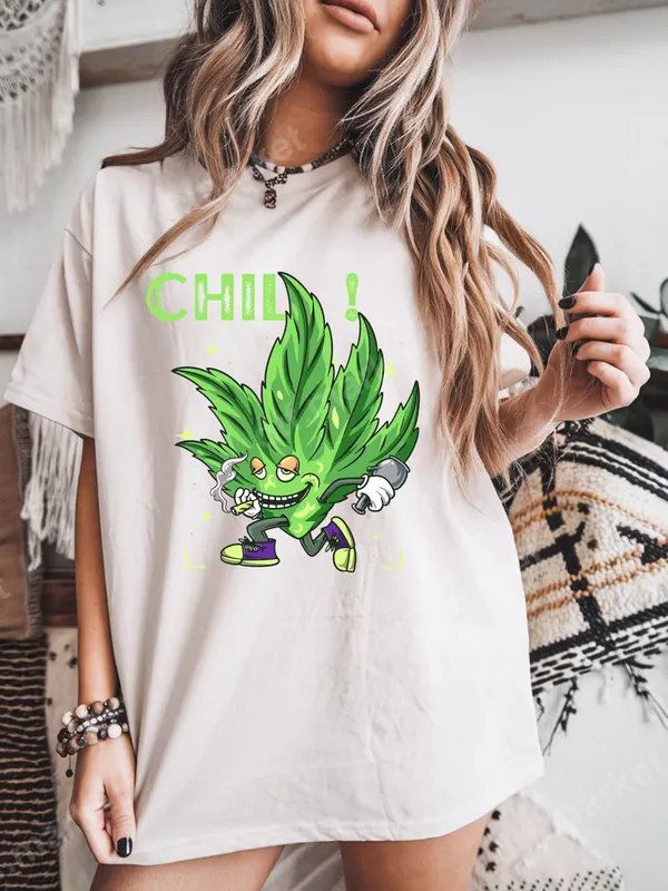 Chill Cannabis Leaf DTF Transfer | Stoner Cartoon Ready to Press