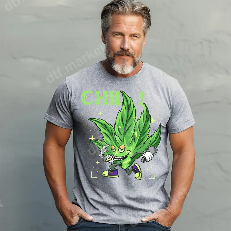 Chill Smoking Weed Leaf DTF Transfer - Ready to Press Apparel Design