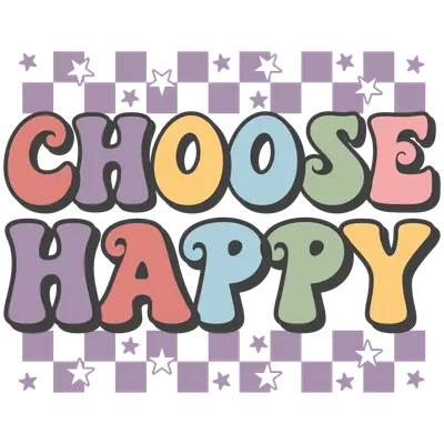 Choose Happy Retro Pastel Checkerboard Stars DTF Transfer