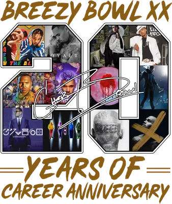 See allThis vibrant DTF transfer celebrates 20 years of Chris Brown's iconic career. The design artistically forms the number "20" from a collage of his most recognizable album covers, single art, and imagery, making it a unique tribute for any fan. Bold "Breezy Bowl XX" and "= Years of Career Anniversary" text frame the artwork, creating a dynamic and stylish ready to press design that captures the essence of his musical journey. This apparel transfer is perfect for dedicated Chris Brown fans, R&B music lovers, and anyone celebrating his extensive discography. It makes an excellent gift for birthdays, anniversaries, fan conventions, or for creating custom merchandise for pop-up shops and small t-shirt businesses. Craft unique iron on transfers for concert outfits, fan group shirts, or as a special collectible item. Applying this heat press transfer is simple and efficient. It works beautifully on a wide range of materials including cotton, polyester, cotton-poly blends, and even nylon, offering versatility for your projects. Use a heat press at 300-325°F for 15 seconds with medium pressure, or a household iron for smaller applications. Enjoy the convenience of no weeding—just peel and press. It's ideal for custom t-shirts, hoodies, sweatshirts, tote bags, denim jackets, and even pillow covers, allowing you to personalize almost anything. For best results, wash inside out and tumble dry low to ensure lasting durability of your heat transfer design. Our direct to film transfer boasts vibrant, full-color printing with exceptional detail, ensuring every album cover snippet in the collage stands out. The crack-resistant finish is soft to the touch, avoiding the heavy, stiff feel often associated with traditional vinyl transfers. Each ready to press transfer is meticulously printed on premium DTF film with a strong adhesive backing, guaranteeing professional-grade results and a long-lasting finish that fans will cherish.