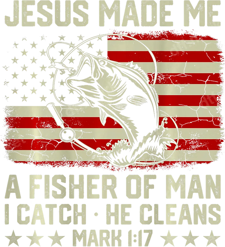 Christian Fisher of Men DTF Transfer | Patriotic Fishing Mark 1:17