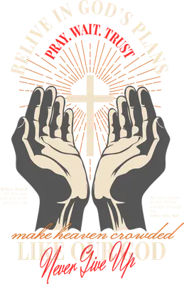 See allThis vibrant DTF transfer beautifully illustrates core Christian beliefs with a powerful design. It features two reverently cupped praying hands centered around a radiant cross, emanating rays of light. Encircling the top are the uplifting messages "BELIEVE IN GOD'S PLANS" and "PRAY. WAIT. TRUST." Below, the design inspires action with "make heaven crowded" and "Never Give Up," alongside references like "LIKE OUR GOD." This ready to press transfer is a profound statement of faith. Perfect for anyone seeking to express their spiritual journey, this design makes an ideal iron on transfer for church groups, youth ministries, Sunday school teachers, or individuals dedicated to their faith. It's a thoughtful gift for confirmations, baptisms, Easter, or simply for daily inspiration. Small business owners and Etsy apparel creators can easily incorporate this meaningful heat transfer design into their product lines, offering unique faith-based clothing. Applying this heat press transfer is straightforward, making it accessible for crafters and businesses alike. It adheres seamlessly to a wide range of materials including cotton, polyester, cotton-poly blends, and even nylon. Achieve professional results using a heat press at 300-325°F for 15 seconds with medium pressure, or apply with a household iron. There's no tedious weeding required—simply peel and press! Create custom t-shirts, cozy hoodies, inspiring tote bags, or even personalized pillow covers with ease. For lasting durability, wash garments inside out and tumble dry on low heat. Our ready to press transfer ensures exceptional quality. Experience vibrant, full-color printing with crisp details and rich saturation. Unlike heavy vinyl, this design is crack-resistant and soft to the touch, providing a comfortable, professional finish. Each direct to film transfer is meticulously printed on premium DTF film, featuring a strong adhesive backing for reliable, long-lasting results that truly stand out.