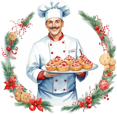 Christmas Baker Chef DTF Transfer with Cupcakes & Wreath
