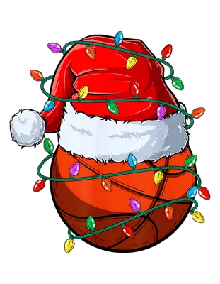 Christmas Basketball DTF Transfer | Santa Hat Holiday Lights Design
