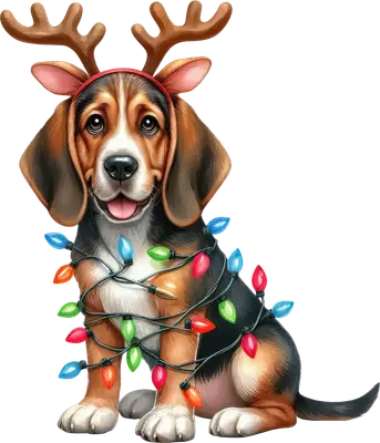 Christmas Beagle Puppy DTF Transfer with Reindeer Antlers & Lights