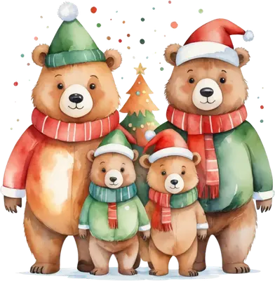Christmas Bear Family DTF Transfer | Watercolor Holiday Apparel Design