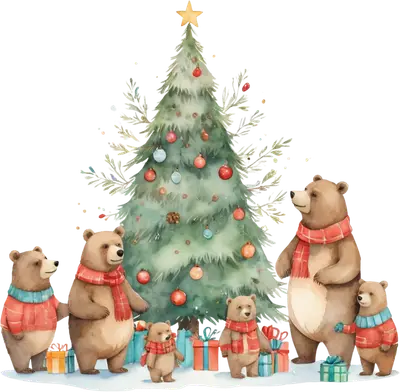 Christmas Bear Family Tree Watercolor DTF Transfer