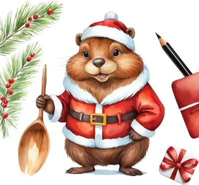 Christmas Beaver Santa DTF Transfer | Cute Holiday Animal Iron On