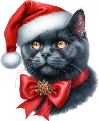 Christmas Black Cat Santa Hat DTF Transfer - Festive Holiday Apparel