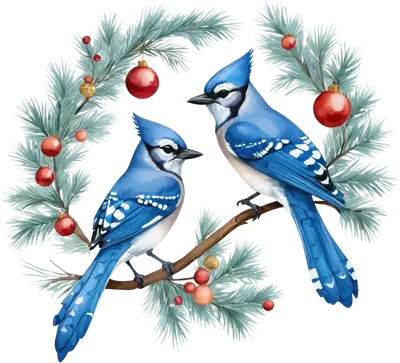 Christmas Blue Jays Wreath DTF Transfer | Festive Winter Birds
