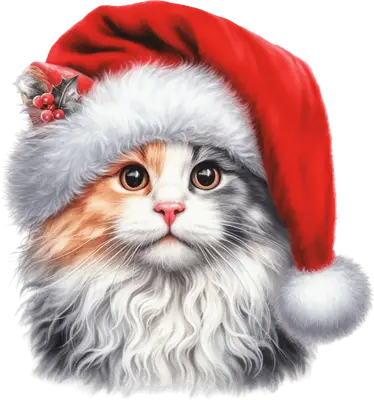 Christmas Calico Cat DTF Transfer with Santa Hat & Holly