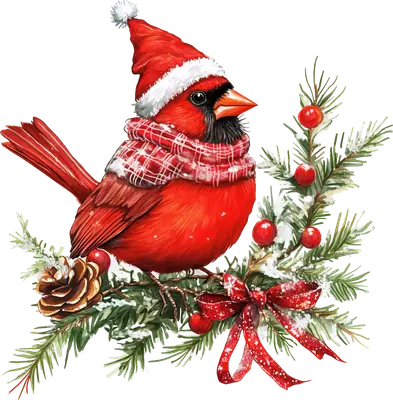 Christmas Cardinal Bird with Santa Hat & Scarf DTF Transfer
