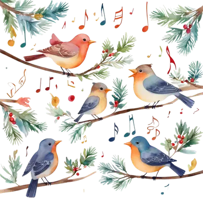 Christmas Caroling Birds DTF Transfer | Festive Winter Songbirds