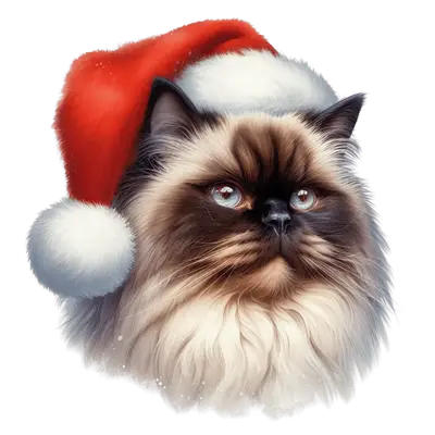Christmas Cat DTF Transfer Fluffy Persian Santa Hat Ready to Press