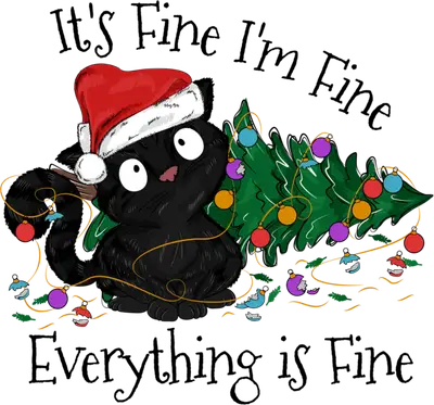 Christmas Cat "It's Fine I'm Fine" DTF Transfer - Sarcastic Holiday Humor