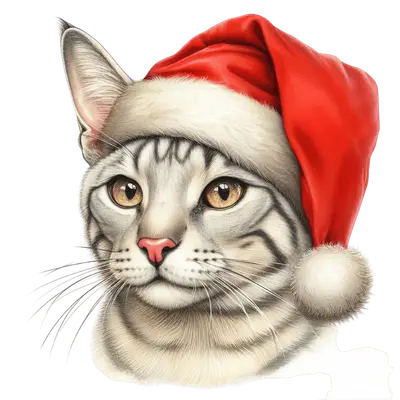 Christmas Cat Santa Hat DTF Transfer | Ready to Press Feline Design