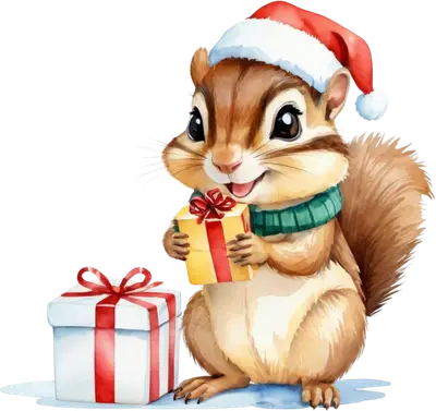 Christmas Chipmunk DTF Transfer with Santa Hat & Gifts