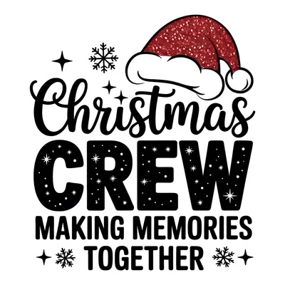 See allCelebrate the festive season and create lasting memories with our enchanting Christmas CREW Making Memories Together DTF transfer. This cheerful design features stylish typography, a whimsical red glitter-textured Santa hat, and delicate snowflakes, embodying the true spirit of togetherness. It's a ready to press design that captures the joy of shared holiday moments, making it perfect for family gatherings or friend groups. The vibrant colors and festive elements ensure your apparel stands out during the most wonderful time of the year. This delightful iron on transfer is perfect for families planning matching holiday outfits, friends organizing a Christmas party, or small businesses looking to add unique seasonal inventory. Crafters and DIY enthusiasts will love the ease of creating personalized gifts, from custom t-shirts for siblings to cozy sweatshirts for a holiday movie night. It's an ideal heat transfer design for anyone who cherishes family traditions and wants to celebrate the holidays in style, whether for group photos or festive events. Applying this heat press transfer is a breeze, compatible with cotton, polyester, cotton-poly blends, and even nylon fabrics. Achieve professional results using a heat press (300-325°F for 15 seconds with medium pressure) or a household iron. There's no tedious weeding required – just peel and press! Use it to personalize custom t-shirts, hoodies, sweatshirts, tote bags, pillow covers, baby onesies, aprons, and denim jackets. For long-lasting durability, wash garments inside out and tumble dry on low heat. Each ready to press transfer features vibrant, full-color printing with exceptional detail, ensuring your design looks fantastic and professional. Our direct to film transfer is crack-resistant, soft to the touch, and avoids the heavy, bulky feel often associated with vinyl. Printed on premium DTF film with a strong adhesive backing, these apparel transfers guarantee professional results every time, letting you create high-quality, memorable holiday garments effortlessly.