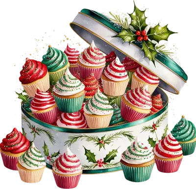 Christmas Cupcakes Gift Box DTF Transfer Festive Holiday Design