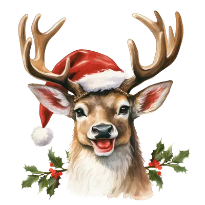Christmas Deer Santa Hat DTF Transfer | Festive Holly Buck Design