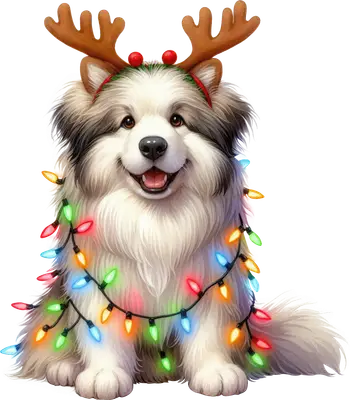 Christmas Dog DTF Transfer | Reindeer Puppy Christmas Lights Design