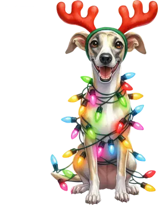 Christmas Dog Reindeer Antlers Lights DTF Transfer