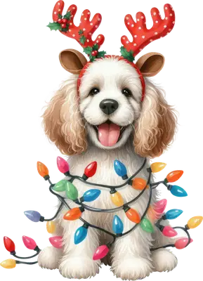 Christmas Dog Reindeer Antlers & Lights DTF Transfer