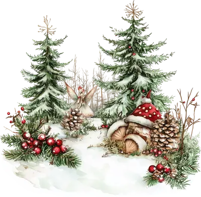 Christmas Fairy Mushroom House DTF Transfer | Snowy Winter Forest Scene