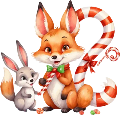 Christmas Fox Rabbit Candy Cane DTF Transfer | Holiday Animal Design