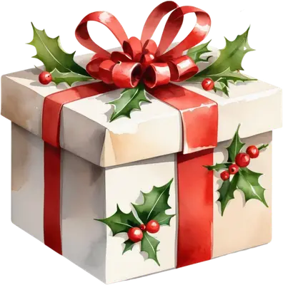 Christmas Gift Box DTF Transfer | Festive Holly & Ribbon Design