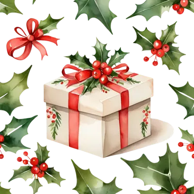 Christmas Gift Box & Holly DTF Transfer | Ready to Press Holiday Design
