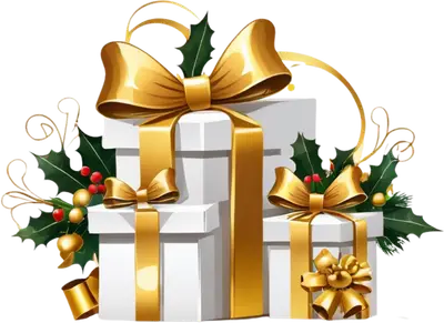 Christmas Gift Boxes Gold Bows Holly DTF Transfer Holiday Presents