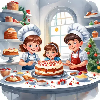 Christmas Kids Baking Cake DTF Transfer - Festive Family Fun