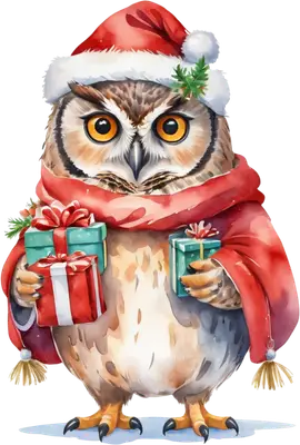 Christmas Owl DTF Transfer | Festive Watercolor Owl with Gifts