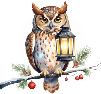 Christmas Owl with Lantern DTF Transfer | Winter Holiday Apparel
