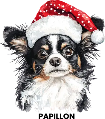 Christmas Papillon Dog DTF Transfer | Santa Hat Ready to Press Design