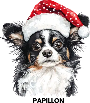 Christmas Papillon Dog in Santa Hat DTF Transfer