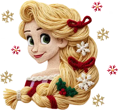 Christmas Princess Rapunzel Embroidered DTF Transfer | Holiday Fairytale Iron On
