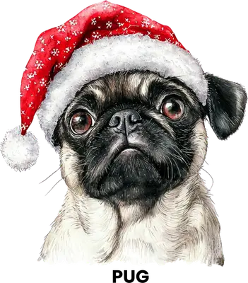 Christmas Pug Santa Hat DTF Transfer - Ready to Press Dog Design