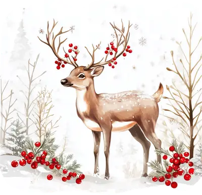 Christmas Reindeer with Holly Antlers DTF Transfer - Winter Deer Heat Press Design