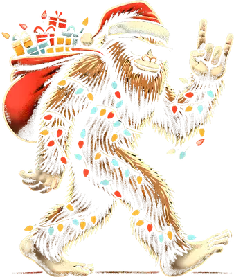 Christmas Rocker Bigfoot DTF Transfer with Santa Hat & Lights