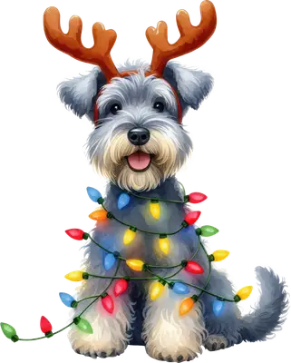 Christmas Schnauzer Dog DTF Transfer | Reindeer Antlers & Lights