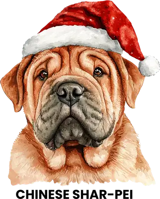 Christmas Shar-Pei Dog DTF Transfer | Ready to Press Santa Hat Puppy Design